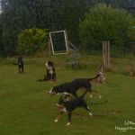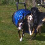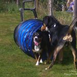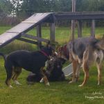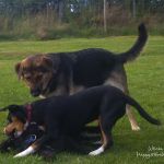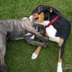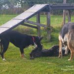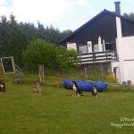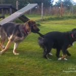 Unsere Zweibeiner haben Kaffee getrunken, an so einem komischen Kasten rumgeschraubt und dann haben die auch noch den Grill angemacht. Hexe und ich haben die Zeit genutzt und haben das ein oder andere Stück Büffelhaut geknabbert, oder haben fangen gespielt. Irgendwann haben wir dann das Spielzeug entdeckt an dem wir beide ziehen können, das war ja klasse.