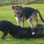 Heute der Tag war dann wieder ganz anders, wir sind alle zusammen gegen Mittag mit dem Auto los gefahren. Allerdings hat mir keiner gesagt wo es hin geht. Als ich dann aus dem Auto aussteigen durfte hörte ich ein bellen ………….. das kam mir auch gleich bekannt vor. Klar das ist doch Hexe. Juhuuuuuuuuuuu das ist ja toll und nach dem Frauchen mich dann los gemacht hatte bin ich erst mal mit Hexe ins Haus gerannt und hab mich genau umgeschaut.