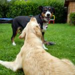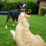 Heute Morgen war erst einmal alles wie immer, doch dann hat Herrchen mein Körbchen ins Auto getragen. Auch mein Wassernapf verschwand im Auto. Frauchen hat mir erklärt das wir zu Franzi fahren. Na das fand ich aber toll, denn bei der war ich doch schon mal. Also begaben wir uns auf eine längere Autofahrt. Dort angekommen hatte ich es eilig zu Franzi zu kommen und wir haben zusammen getobt. Frauchens Neffe hat dann so ein komisches Wasserdings angemacht (Wasserblume haben die Zweibeiner dazu gesagt) das fand ich nicht so toll. Das war ja fast wie Regen und davon hab ich echt die Nase voll. Ich hatte echt einen tollen Tag mit Franzi und den vielen kleinen und großen Zweibeinern.