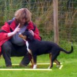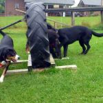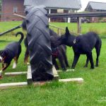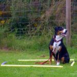 Na und heute war dann auch wieder Hundeschule. Da musste ich wieder hinter Frauchen her laufen und dann saß ich von Stöcken umgeben und Frauchen hat die guten Leckerchen auf die Erde fallen lassen und ich durfte da nicht dran. Na, ja ist ja für mich kein Problem, auch als Susanne das Spielzeug geworfen hat, habe ich mich nicht von der Stelle gerührt. Na da hat sich Frauchen aber gefreut.
