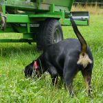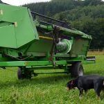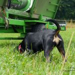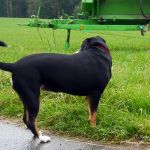 Dann hat der Bauer hier nebenan das Feld geerntet und so komische runde Ballen stehen lassen, die fand ich erst mal nicht so klasse, aber Herrchen hat mir dann gezeigt das die nicht gefährlich sind und ich konnte einen Ballen beschnuffeln.