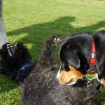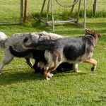 Da klingelt doch echt am Mittwoch der Wecker und Herrchen steht auf. Nach dem Frühstück sind meine Zweibeiner dann mit dem Auto verschwunden und als Frauchen Mittag´s wieder heim kam, fehlte Herrchen. Man das war ja blöd. Nachmittags ist Frauchen dann mit mir zur Spielstunde gefahren, aber da hatte ich echt keinen Bock drauf, deshalb hab ich mal ordentlich gezickt, aber damit kam ich nicht weit. Susanne hat mir ganz schnell klar gemacht dass sie das nicht duldet. Danach hatte ich dann auch keine Lust mehr zu zicken. Ich bin erst mal bei Frauchen sitzen geblieben.