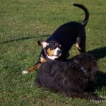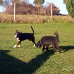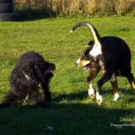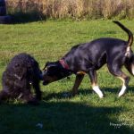 Am Samstag war dann wieder Hundeschule, zum letzten Mal in diesem Jahr. Da haben wir wieder tolle Spiele mit unseren Zweibeinern gespielt und toben durften wir auch.