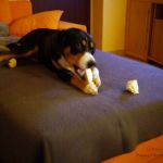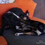 Dann haben Hexe und ich das eine und andere Leckerchen verputzt und sind in der Wohnung ein wenig rum gedallert. Das war echt ein schöner Nachmittag und zu Hause angekommen bin ich direkt nach dem Abendessen in meinem Körbchen verschwunden und hab eine Runde geschlafen.