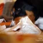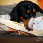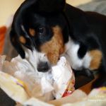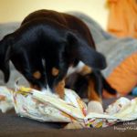 Da sind mir die Bäume draußen aber viel lieber. Herrchen ist dann mit mir raus gegangen und als wir wieder zurück kamen war Frauchen ganz aufgeregt und zeigte mir was da unter dem Weihnachtsbaum lag. Boah da war ein ganzer Teller mit Leckerchen und ein schönes Päckchen. Frauchen hat mich dann aufgefordert das gut duftende Päckchen aus zu packen. Da waren leckere Fischbröckchen drin und einen dicken Kauknochen hab ich auch gefunden. Leider hat Frauchen den Leckerchenteller so weg gestellt das ich nicht alleine dran komme. Erst hinstellen und dann wieder weg nehmen, das ist doch echt voll gemein. Das war mein erster Gedanke, aber ich bekam in den Tagen doch das ein oder andere Leckerchen mehr wie sonst. Frauchen hat die dann versteckt und ich durfte mir das ein oder andere tolle Leckerchen in der Wohnung suchen. Das macht echt Spaß. Es könnte immer Weihnachten sein.