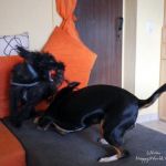 Da war zum einen der Besuch von meiner Freundin Hexe. Frauchen hatte mir gar nichts verraten und dann steht Hexe bei mir im Wohnzimmer. Na das war vielleicht eine Freude. Wir haben dann zusammen getobt und hatten echt ganz viel Spaß.